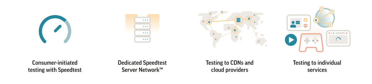 Unlike other solutions that primarily test in the background, Ookla collects data as a foreground service in Speedtest and associated mobile applications. Speedtest is uniquely able to saturate a connection to measure throughput, and Ookla data is collected in the places consumers are using their devices, at times they care about connectivity.